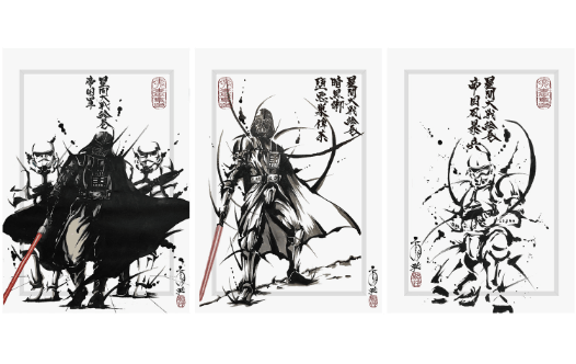 「スター・ウォーズ」の世界観を満喫できる多彩なデザイン商品と大塚家具が世界から厳選した本格的インテリア300種以上を取り揃えた期間限定ポップアップコーナー「STAR WARS / PREMIUM HOME COLLECTION 2016 by IDC OTSUKA」にて、NHK大河ドラマ「真田丸」のカレンダーやポストカードデザインなどを手掛け、今注目を集める武人画師こうじょう雅之氏による、「スター・ウォーズ」人気キャラクターをその場で描き上げるライブアート。
