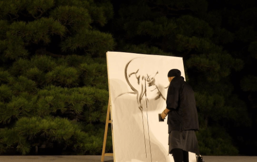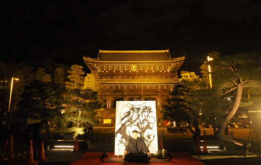 国宝知恩院三門前にて開催。武人画師こうじょう雅之によるパフォーマンスアート。